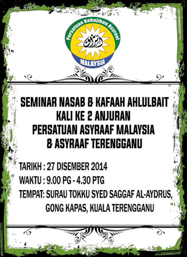 p/s: Insya-Allah pihak admin sedang berusaha untuk menerbitkan DVD Seminar Nasab & Kafaah untuk rujukan dan rekod ahlul bait yang berminat.