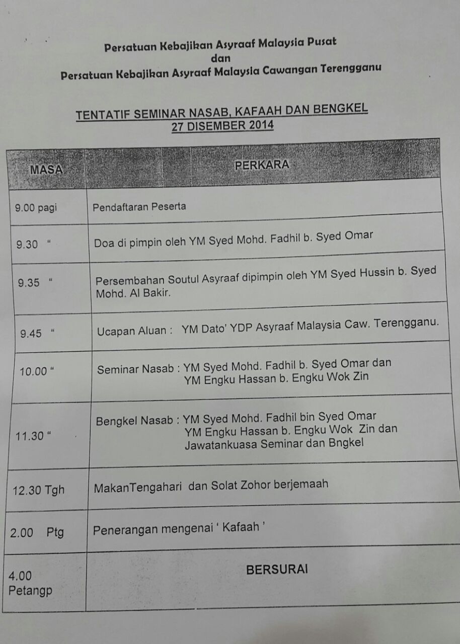 Sumber : Syed SEIF Jamalullail (posted in Telegram group Asyraaf Malaysia on 08 Sept. 2014); credit to Syed Mohd Shaiful Jamalullail a.k.a. Syed Seif Jamalullail, Syed Padzil Barakbah & AJK Asyraaf Malaysia 🙂