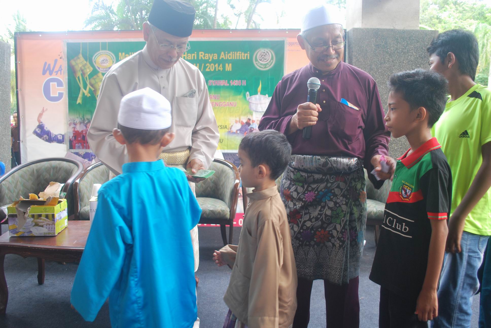 Majlis juga diselang-selikan dengan persembahan qasidah dan selawat oleh Kumpulan Shoutol Asyraaf Terengganu di bawah pimpinan Syed Husain Najmi bin Sayed Mohd Al Bakir. Majlis disudahi dengan penyerahan sumbangan untuk Tabung Aman Palestin, penyampaian hadiah cabutan bertuah dan penyampaian sumbangan hari raya kepada anak-anak yatim dan kanak-kanak yang hadir.